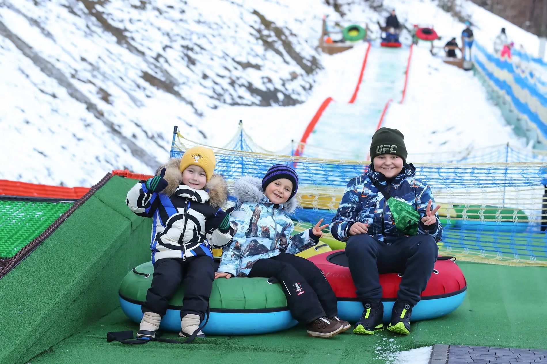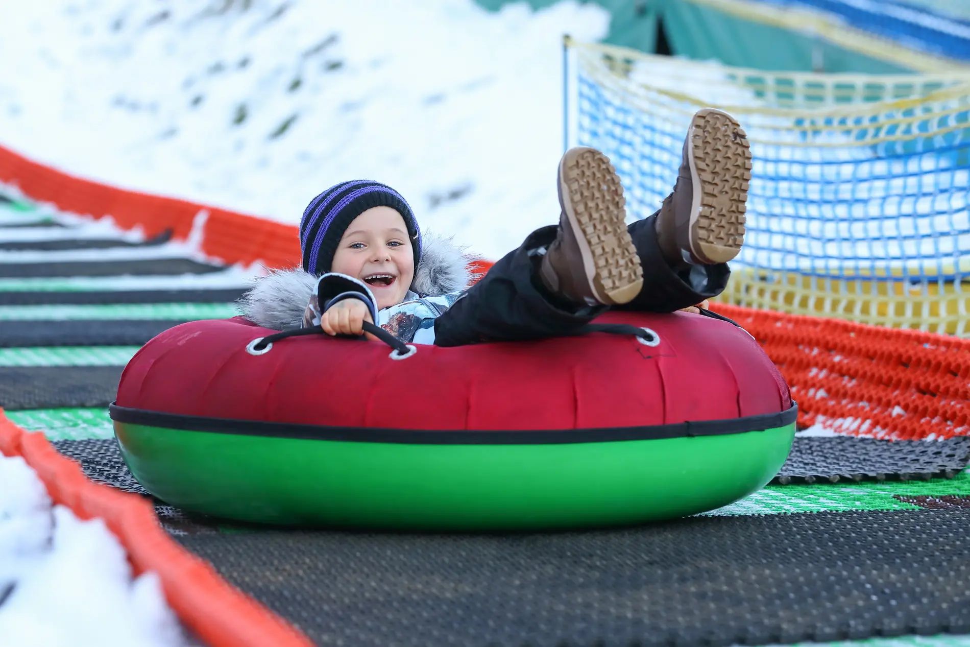 Унікальний спуск довжиною 65м із всесезонним покриттям Neveplast, яке дозволяє досягти ковзання подібного до сніжного. Тюбінгова атракція розрахована на дорослих та дітей від 3-х років і є абсолютно безпечною за умови дотримання правил безпеки та вказівок працівників розваги. Покриття Neveplast забезпечує роботу спусків протягом року незалежно від погоди.
