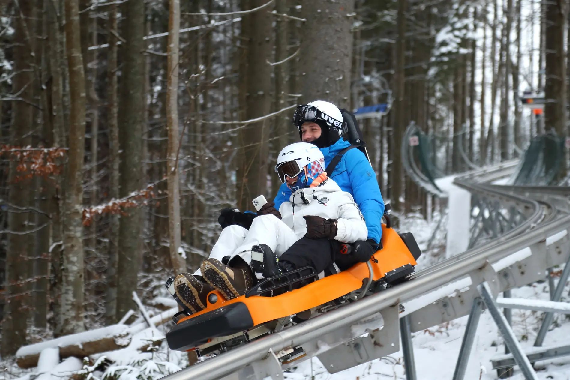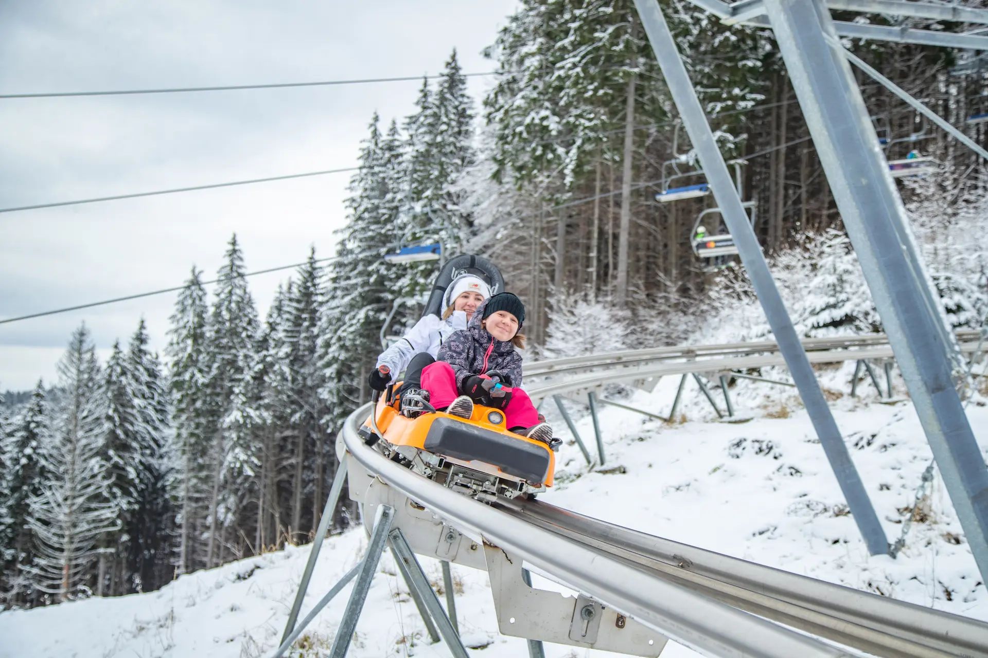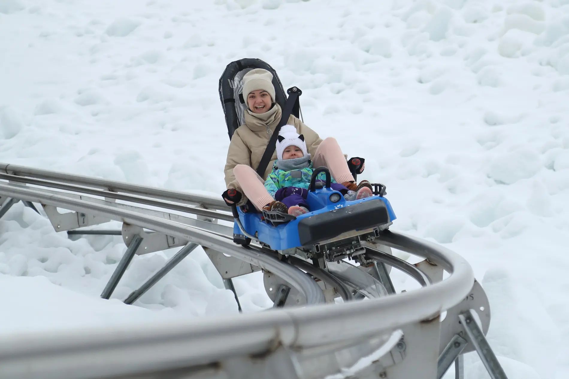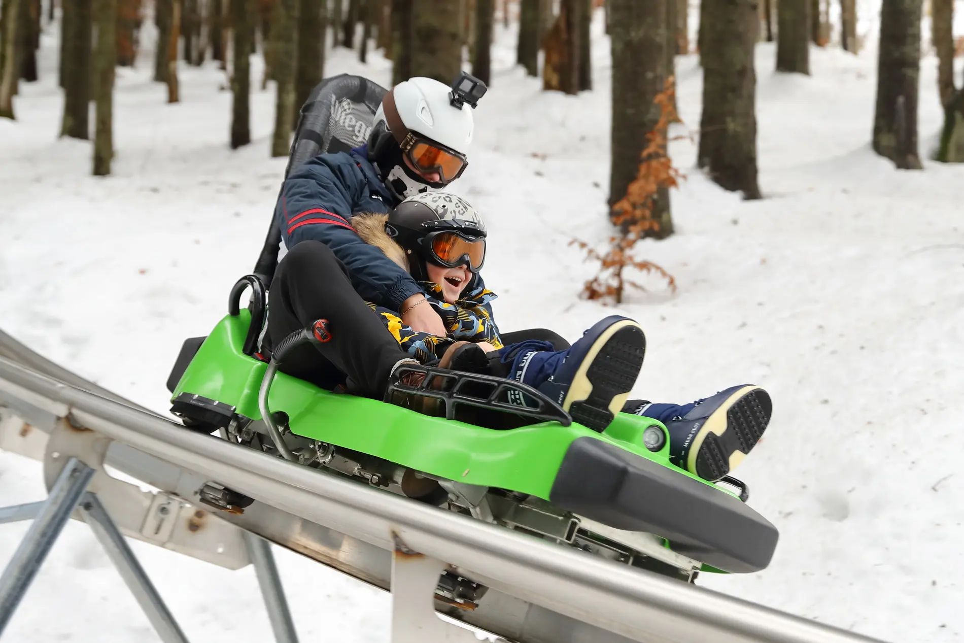 Всепогодна санна траса вперше розташована на території України. Віражі, повороти та стрибки надають особливу гостроту відчуттів. Атракціон надає можливість самостійно керувати швидкістю санчат, які несуть вниз по схилу одного або двох пасажирів.