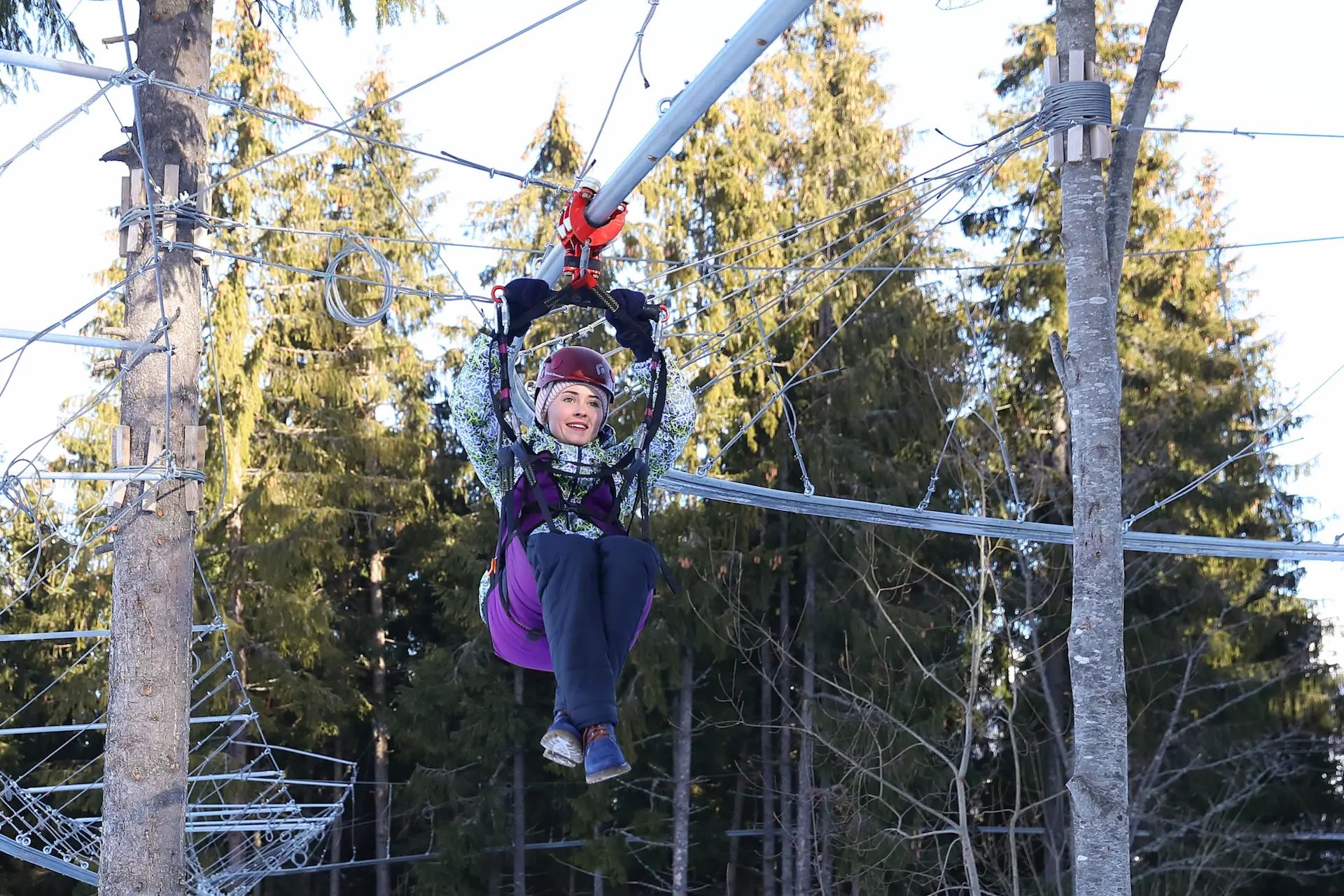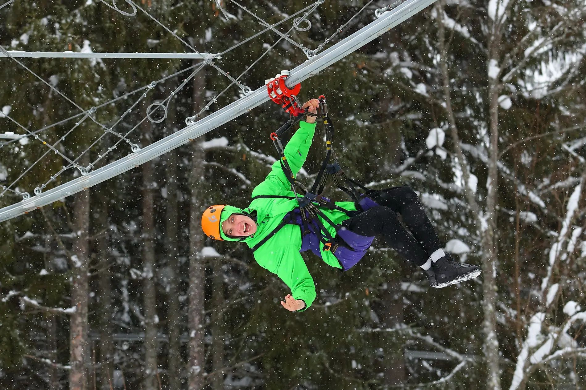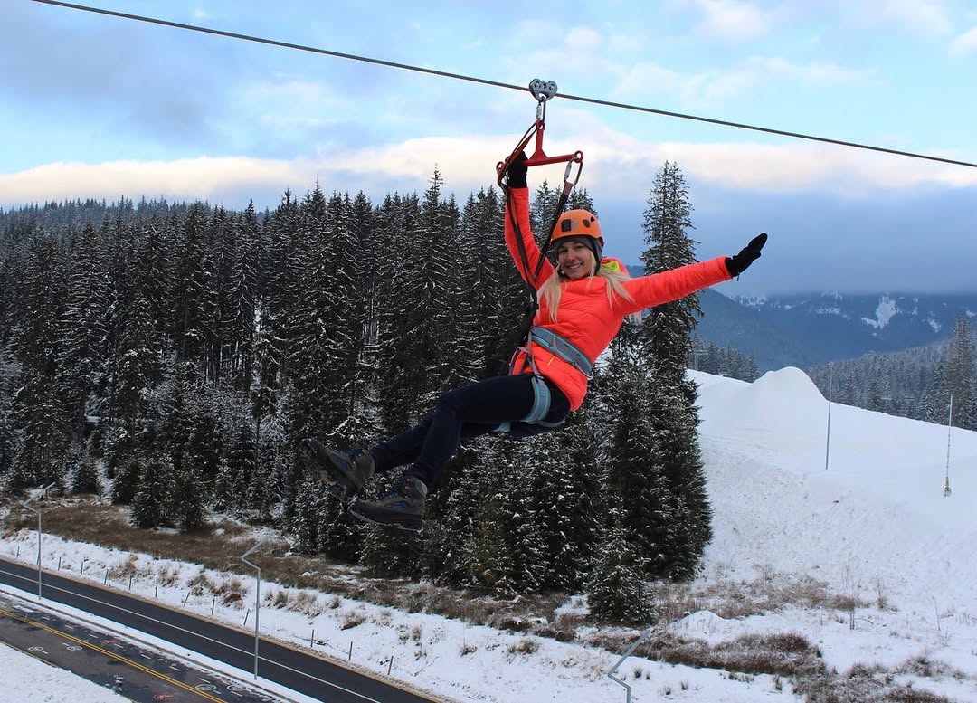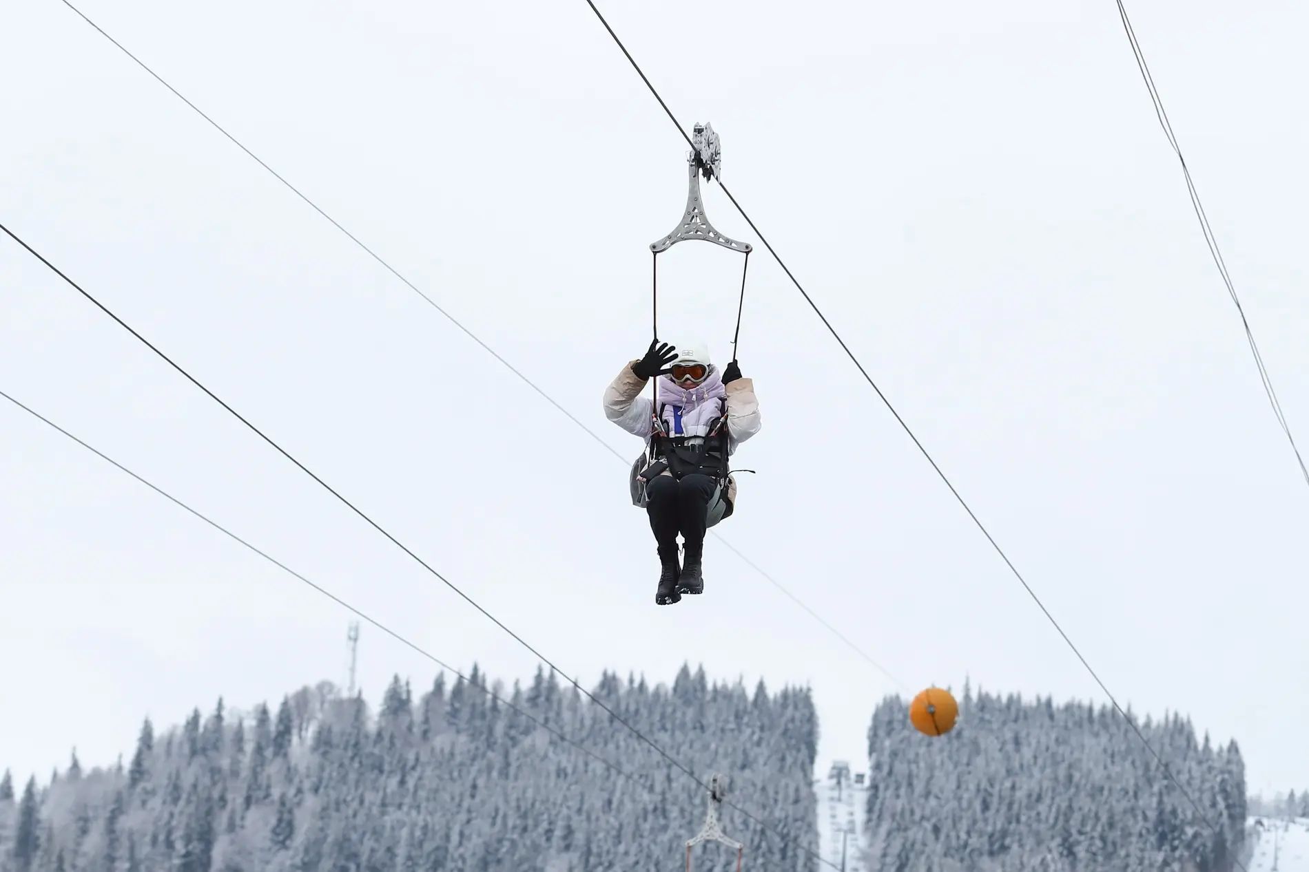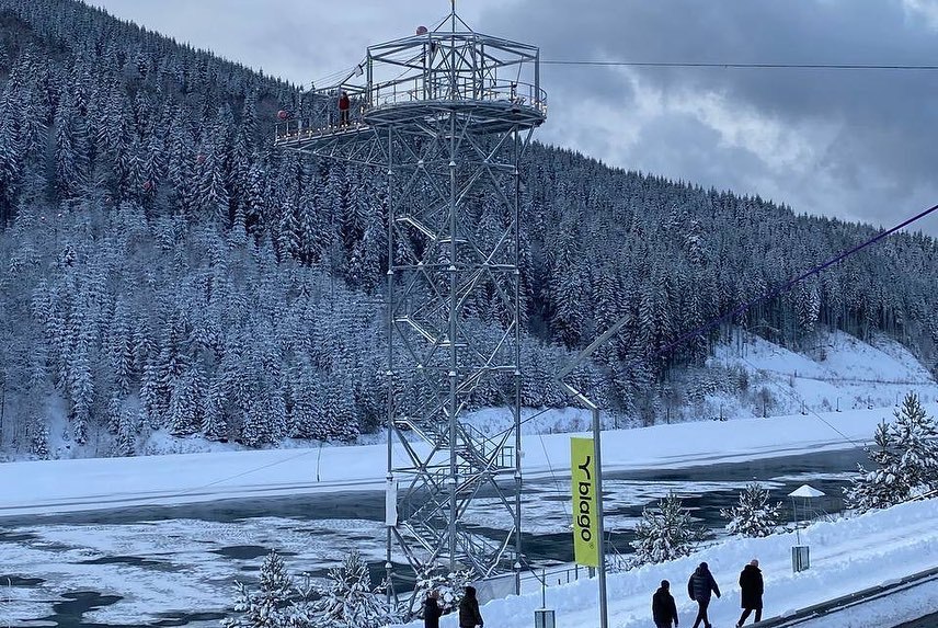 Політ на тролеї “Буковель” – це справжня повітряна пригода! За 100 секунд ви зможете пролетіти від вершини гори Буковель до самісінького центру курорту – на дах паркінгу №2.