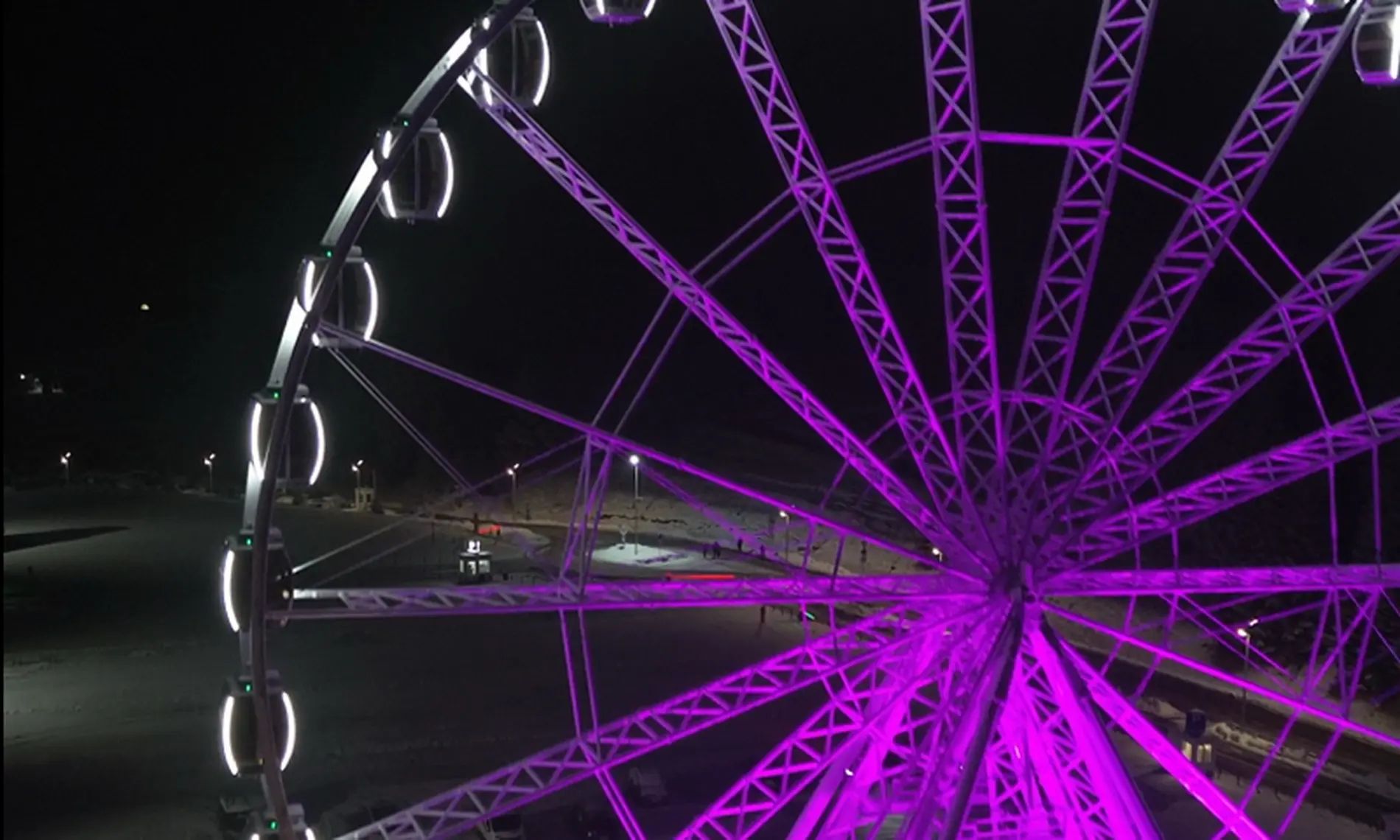 Кабіни оглядового колеса закритого типу з панорамним склом з усіх сторін дозволять помилуватися панорамою на 360 градусів. Для безпеки та комфорту гостей усі кабіни оснащені складаними лавками, системою кондиціювання, автоматичними дверима, резервним акумулятором та аварійною системою.